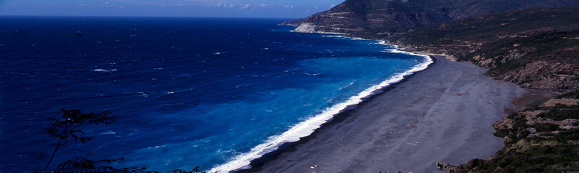 The Cap Corse west coast, from Farinole to Centuri, is made of sand or pebble beaches. One of them, at the bottom of Nonza’s Genoese tower, is famous for its 2km long stretch of black pebbles.